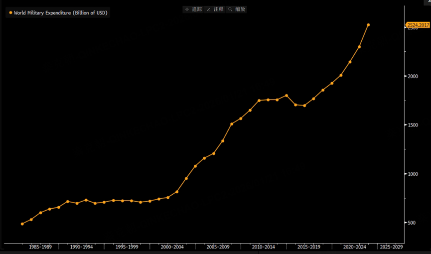 Essentially, it stems from the continuous annual growth in military spending across nations. For instance, the U.S. defense budget reached $997.3 billion in 2024, marking an 8.9% year-over-year increase—far exceeding GDP growth!