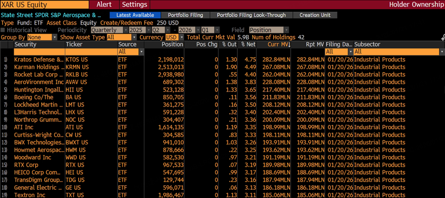 The greatest advantage of $SPDR S&P Aerospace & Defense ETF(XAR)$ lies in its low management fee of just 0.35% and highly diversified holdings. Its largest position is $Kratos Defense & Security Solutions(KTOS)$ , with a market cap of only $21.7 billion. Compared to its larger counterparts, it favors small-cap defense stocks: