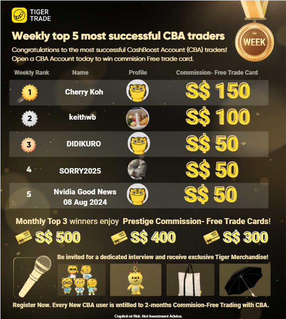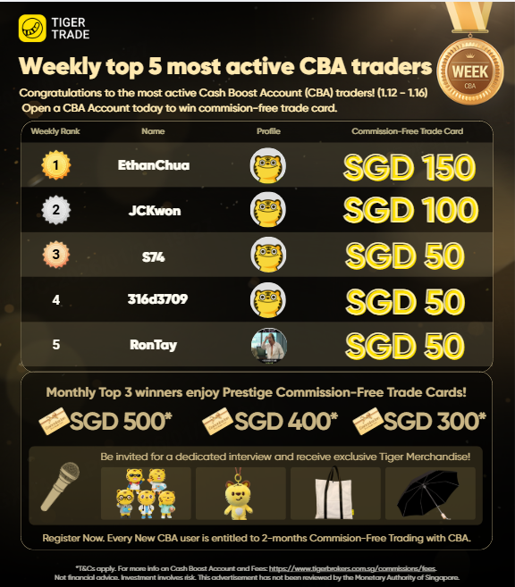 For SG users only, Welcome to open a CBA today and enjoy access to a trading limit of up to SGD 20,000 with unlimited trading on SG, HK, and US stocks, as well as ETFs.
