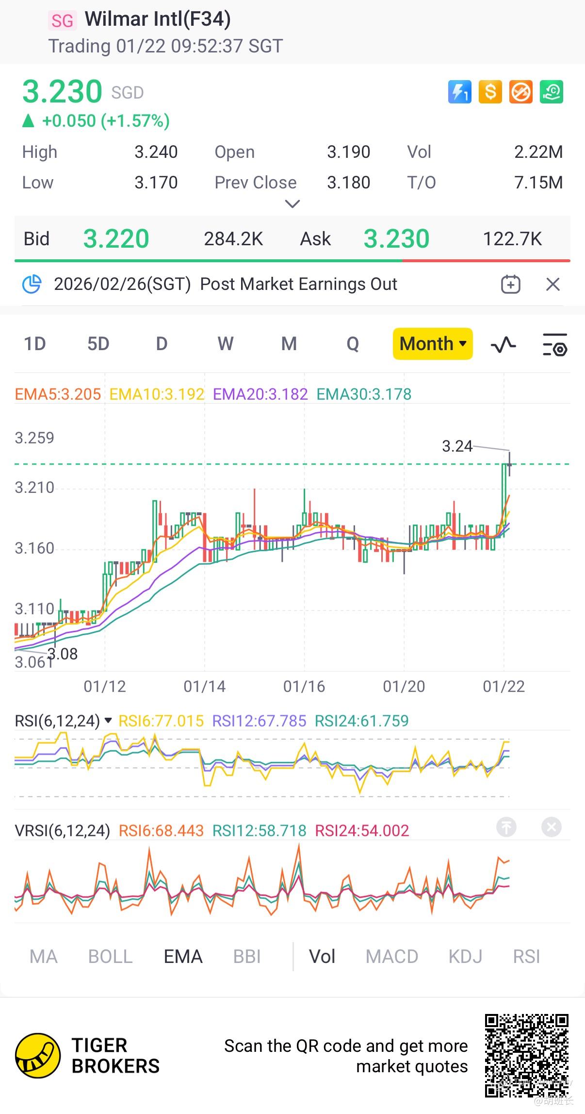 $Wilmar Intl(F34.SI)$  1-month high