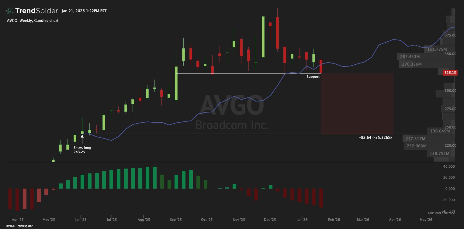 If AVGO breaks 332–350 and starts living below it, we should not be surprised by:
