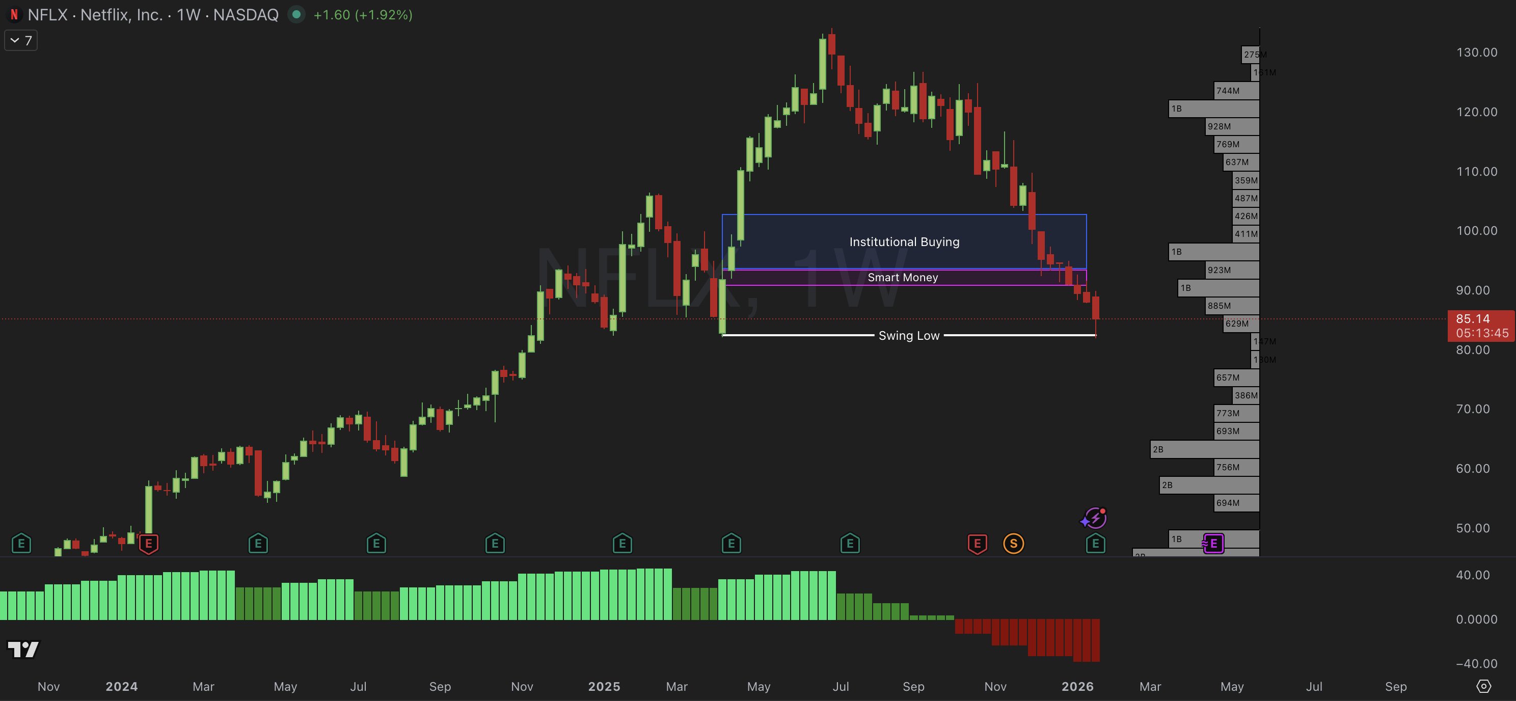 NFLX is hanging on by a thread here, trying hard not to break this key swing low and lose bullish structure.