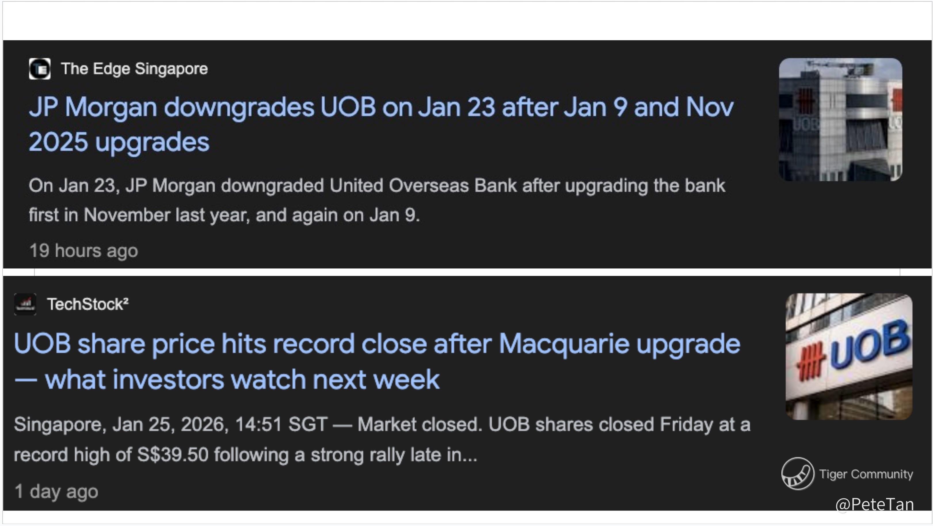 Few days back, UOB received an upgrade and the share price jumped 5%, and today it received a downgrade and the share price dropped over 2%…..