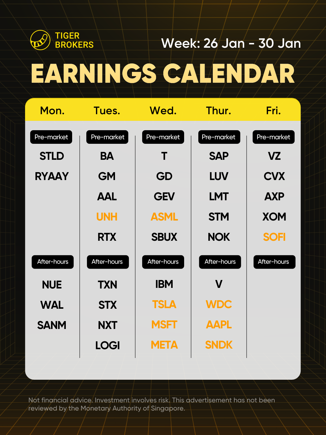 $ASML Holding NV(ASML)$: An essential pulse-check on the semiconductor supply chain; focus is on net bookings for EUV machines and 2026 revenue guidance as chipmakers transition to 2nm nodes.