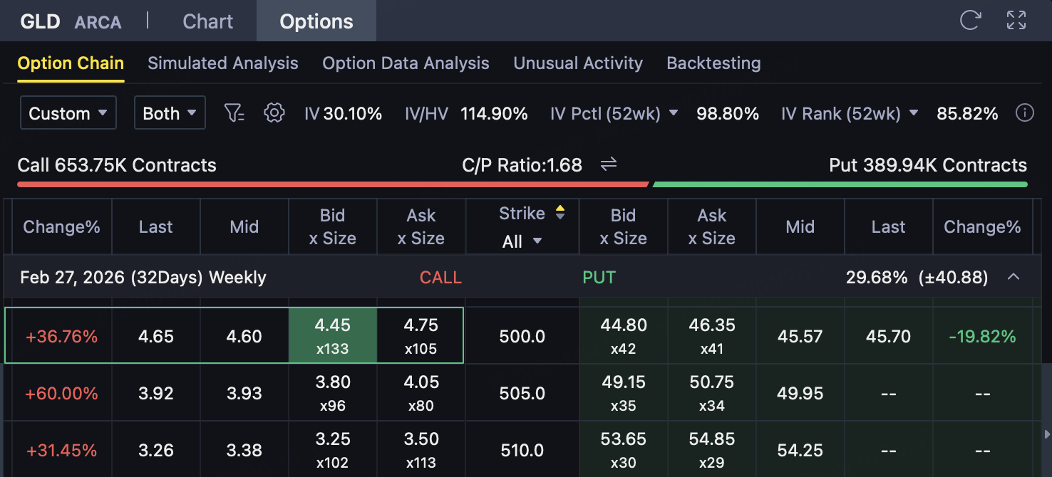 This Call is much higher than the current price and belongs toImaginary value Call。 As long as the GLD expires≤ $500, the Call will expire and investors can retain all premium rights.