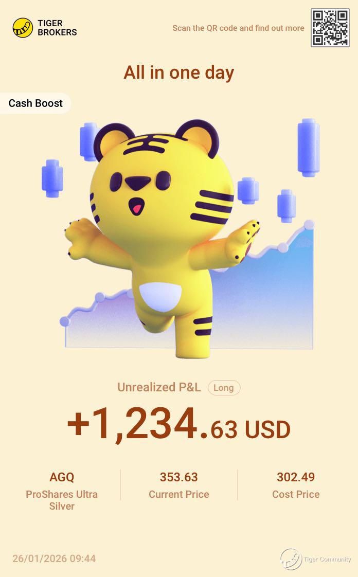 $ProShares Ultra Silver(AGQ)$ This move in AGQ has been a joy to watch. Spot silver just broke $107/oz for the first time, up over $35 this month — nearly a 50% rally. With leverage kicking in, the gains really stand out. Holding through it was totally worth it.