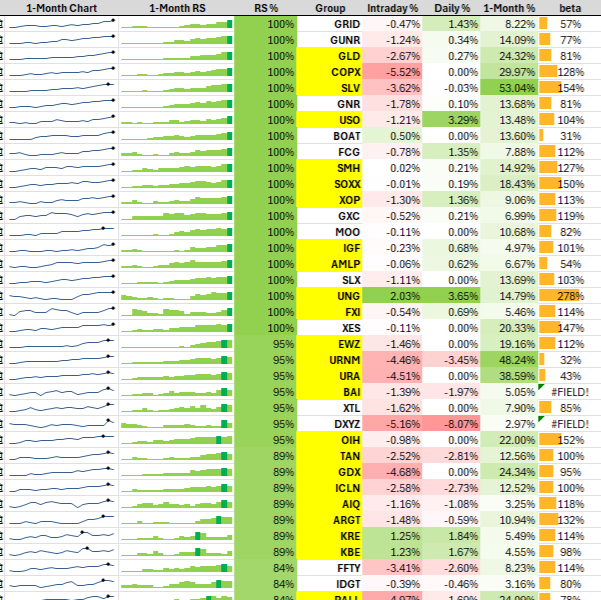 6 weeks after the short-term market pullback that rebounded on the close of 18th December, the strongest 1-month RS groups remain largely intact from the below quoted post.