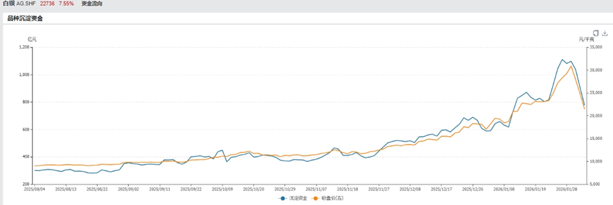 Comparing silver with gold, we can see that gold’s drawdown remains relatively mild, with major players mostly taking profits at elevated levels. In contrast, silver’s capital curve has plunged off a cliff—indicating a complete collapse in long-side confidence. $白银主连 2603(SImain)$ $迷你白银主连 2603(QImain)$ $白银2603(SI2603)$