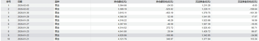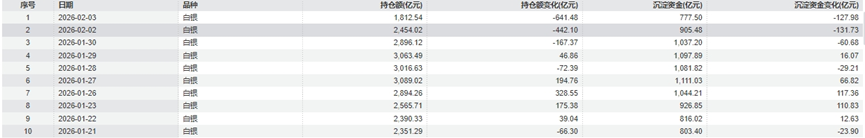 Looking specifically at domestic gold futures, the decline in settled capital clearly shows a tide of capital outflow. Starting January 30, the market experienced significant net fund outflows for two consecutive days, with over RMB 30 billion in settled capital evaporating. As of February 3, fund flows remain negative.