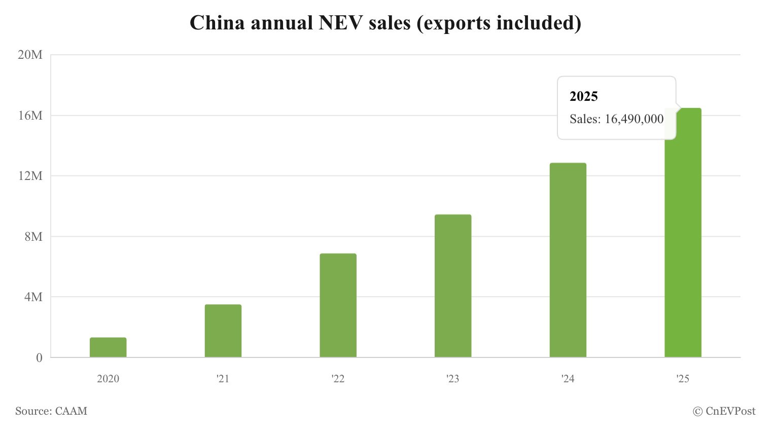 Over the past five years, China's NEV sales went from 1.3m units (2020) to 16.5m units (2025). That's a 66% CAGR, which is unheard of in the modern history of the automotive industry.