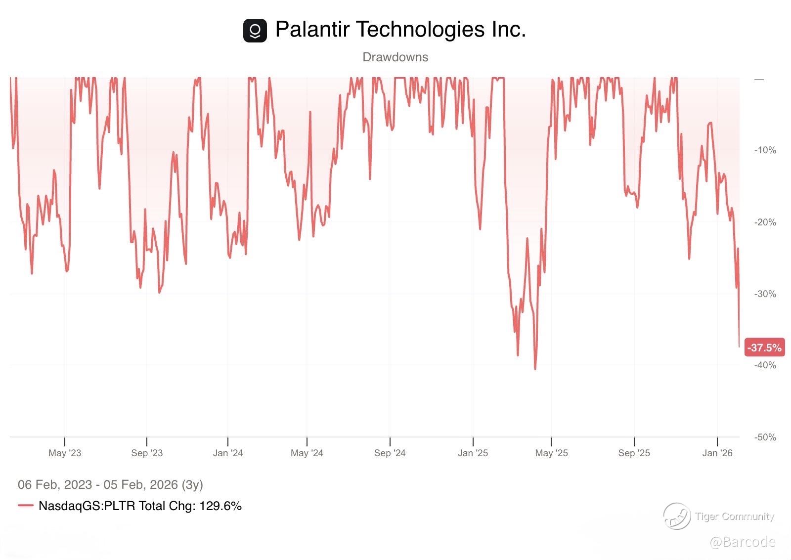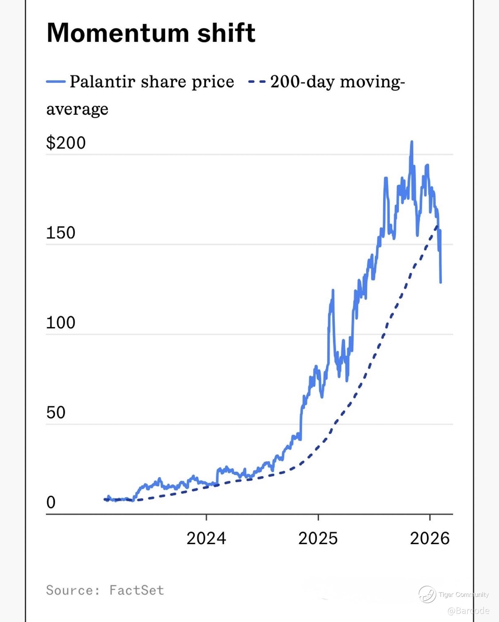$PLTR now trades roughly 37% below its 52 week highs near $207 and sits well beneath the 200 day moving average around $160, a level that anchored the advance through 2024 and 2025. Once that long held trend support fails, behaviour flips. Dip buying fades and rallies meet supply.