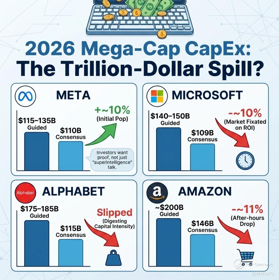Across the last few mega-cap prints, 2026 CapEx plans moved from "already huge" to "did someone spill a trillion dollars on the keyboard."