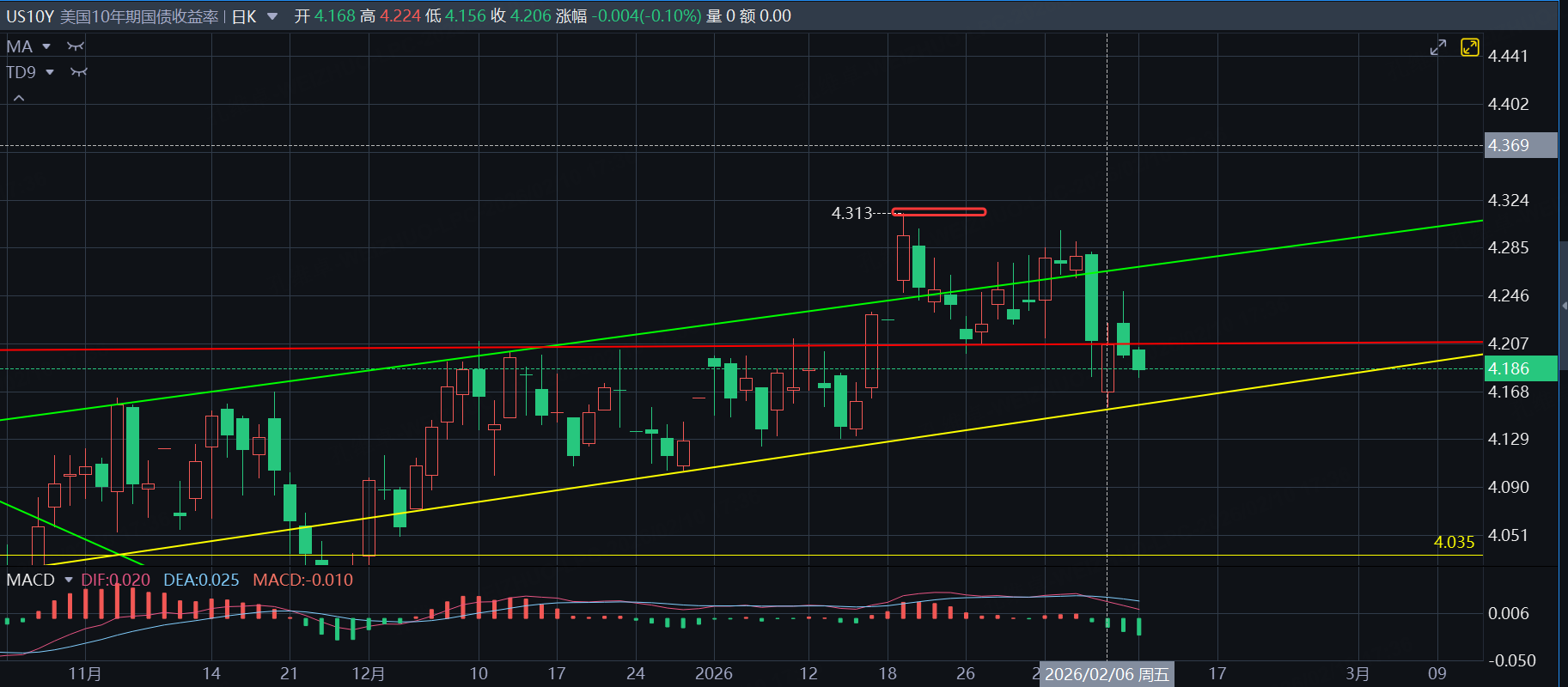 So if a “particularly strong” nonfarm payrolls print reduces rate-cut expectations, the possibility that the S&P continues to move lower cannot be ruled out. At present, the 10-year U.S. Treasury yield is at the key level of 4.2% and remains in an overall upward trend; if it breaks above 4.3%, it could put valuation pressure on high-level U.S. equities.