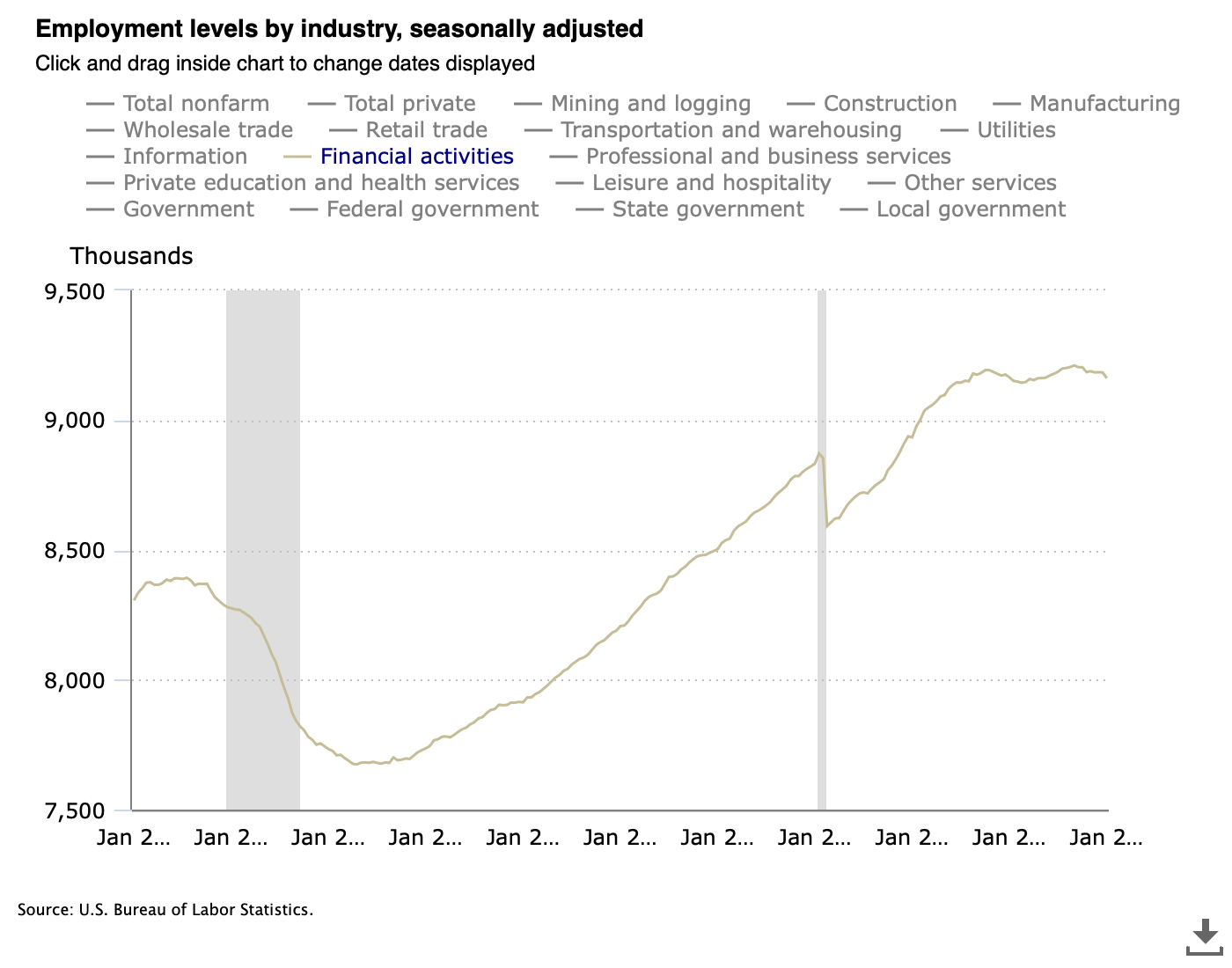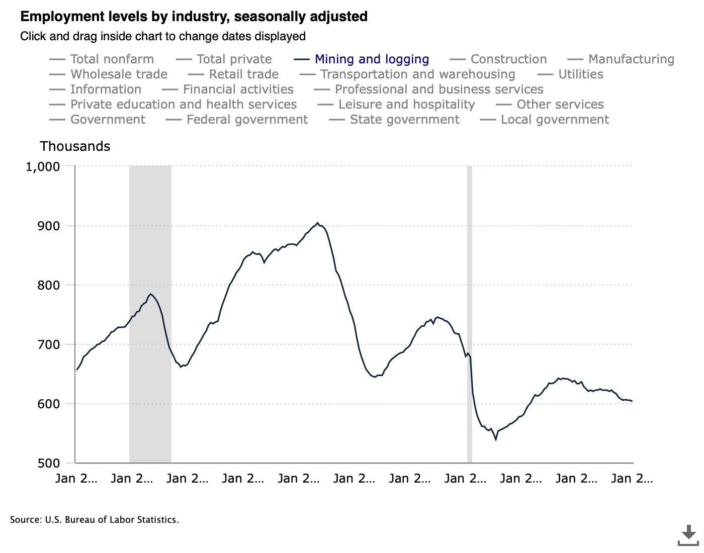 Look at the left axis on these charts. There are 8.3 million people working in construction, 600,000 in mining and logging, 12.6 million in manufacturing, and 22.4 MILLION in “professional and business services.”