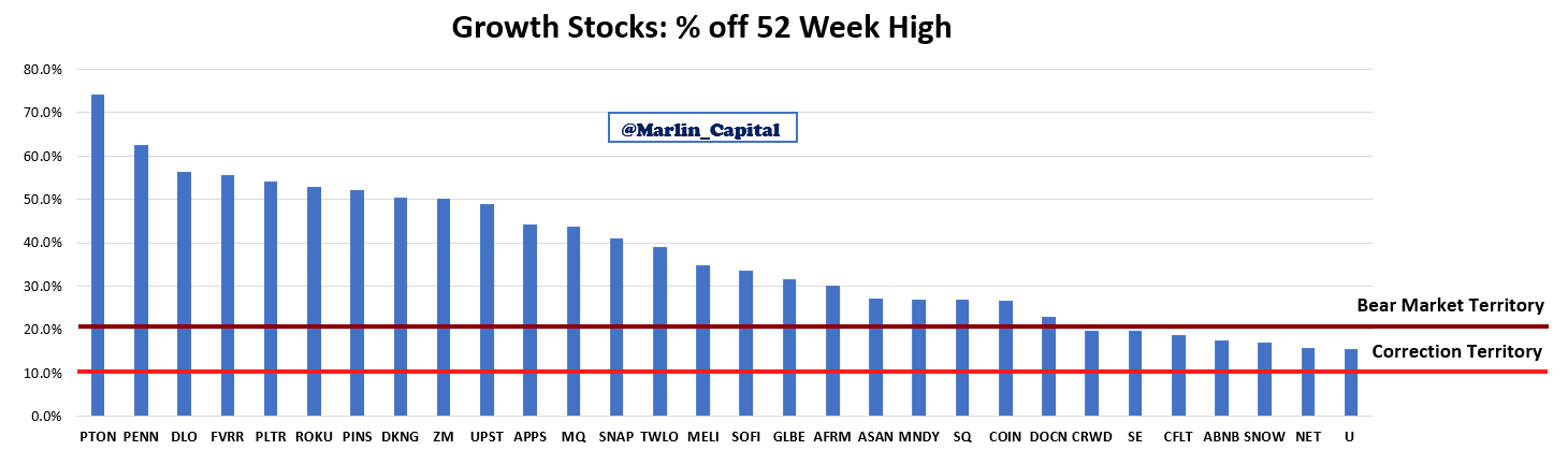 With the indices near ATHs, the majority of growth stocks are in correction territory and many are already in bear markets.
