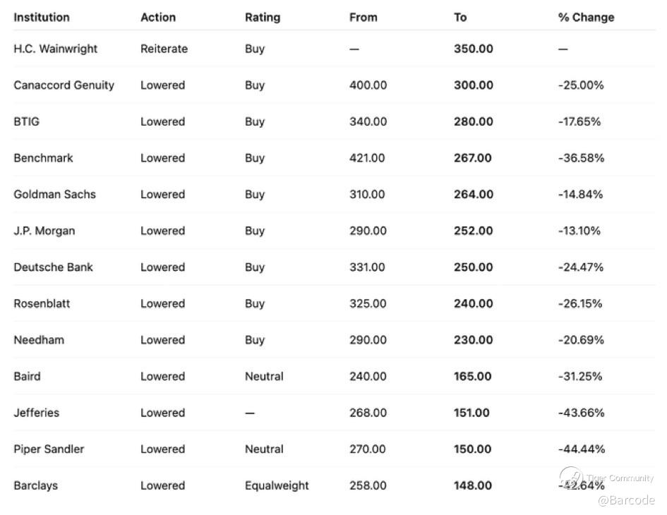 Analyst Price Target π― Updates ~ PTs now range from $350 (HCW) down to $148 (Barclays).