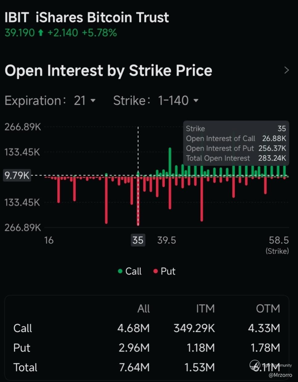 The biggest open interest in $iShares Bitcoin Trust(IBIT)$