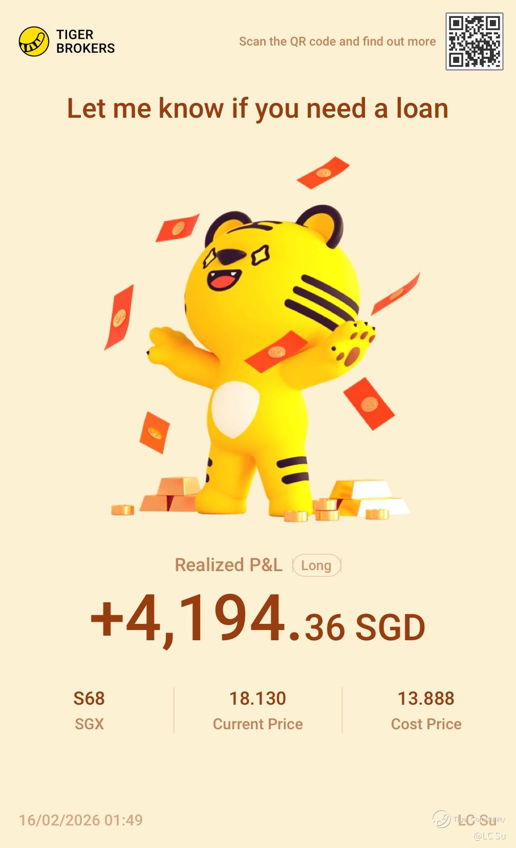 Share your positions with us! This is a column where you can find the winning trades of our fellow tigers. There probably are a few potential opportunities that you may have overlooked.