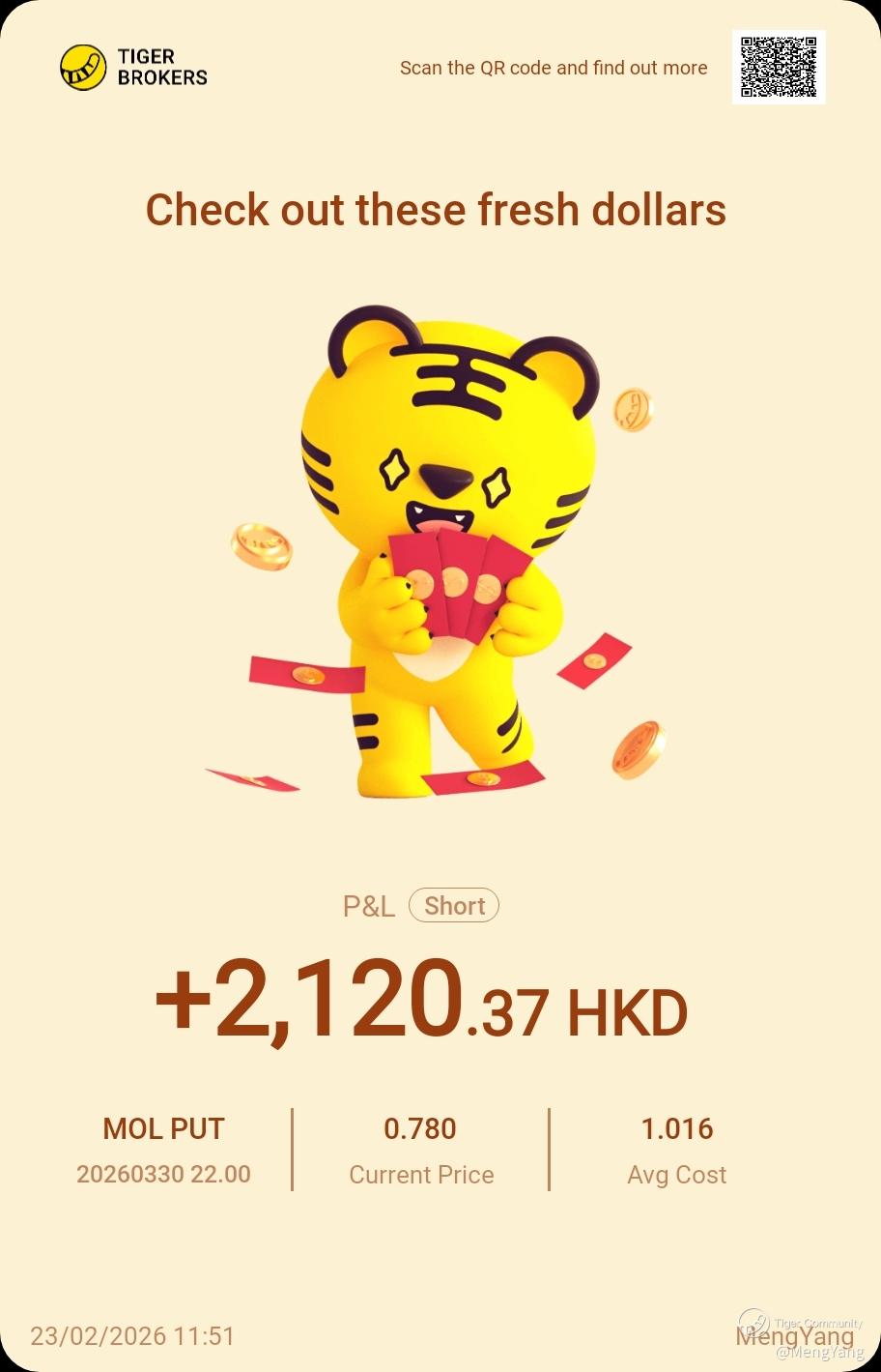 Share your positions with us! This is a column where you can find the winning trades of our fellow tigers. There probably are a few potential opportunities that you may have overlooked.