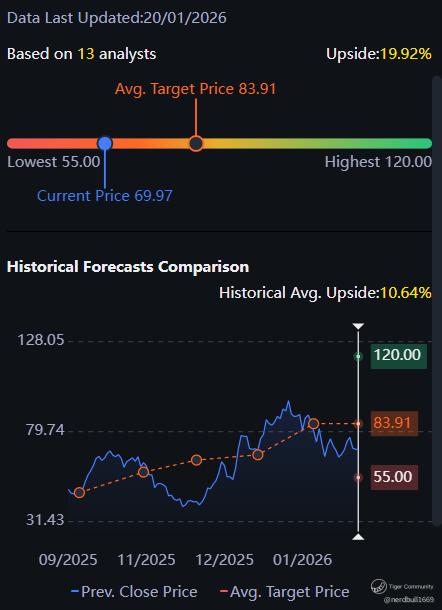 Based on 13 analysts from Tiger Brokers app offering 12 month price targets for Rocket Lab USA in the last 3 months. The average price target is $83.91 with a high forecast of $120.00 and a low forecast of $55.00. The average price target represents a 19.92% change from the last price of $69.97.