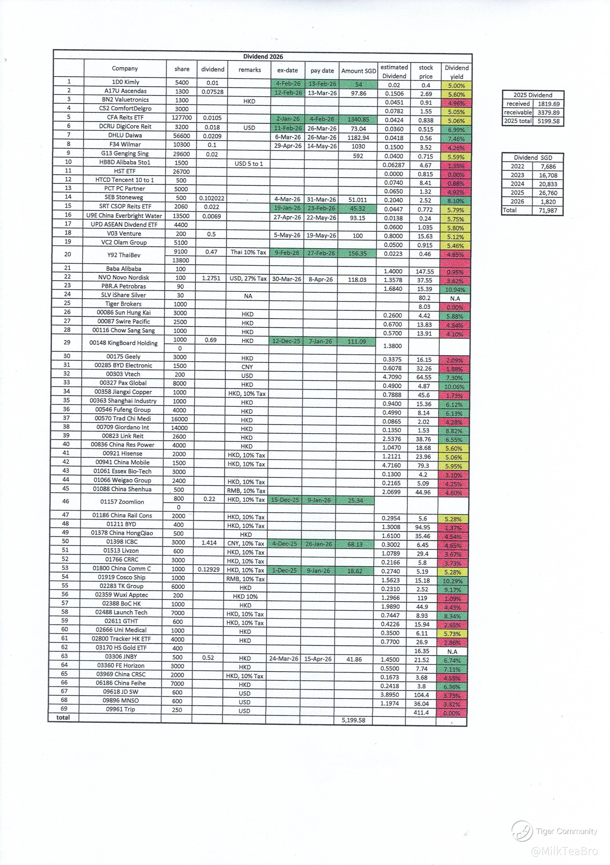 2026 Dividends: Accumulated SGD 5000 dividends year-to-date.
