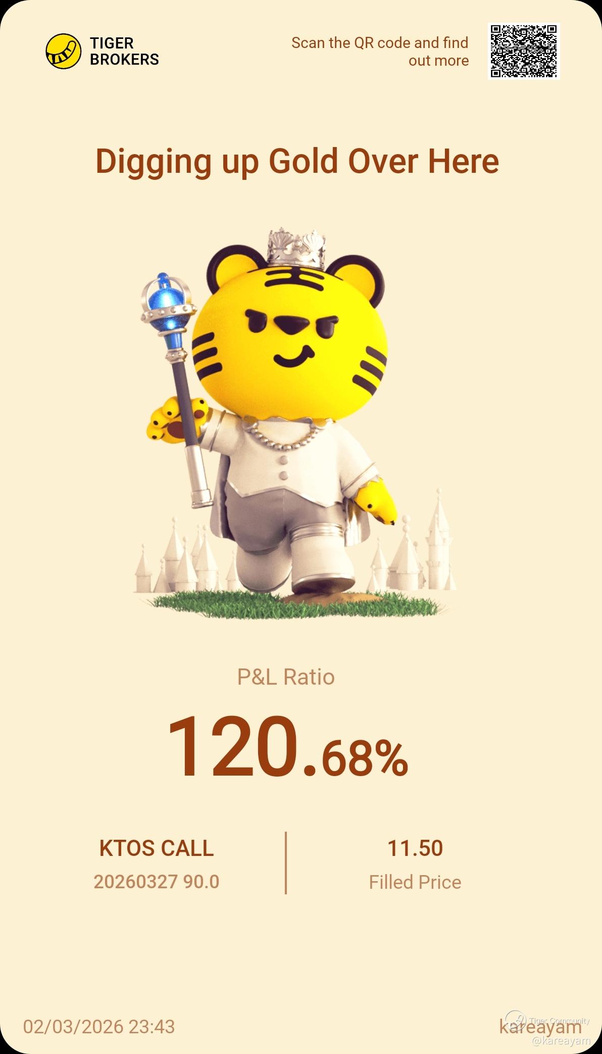 Share your positions with us! This is a column where you can find the winning trades of our fellow tigers. There probably are a few potential opportunities that you may have overlooked.