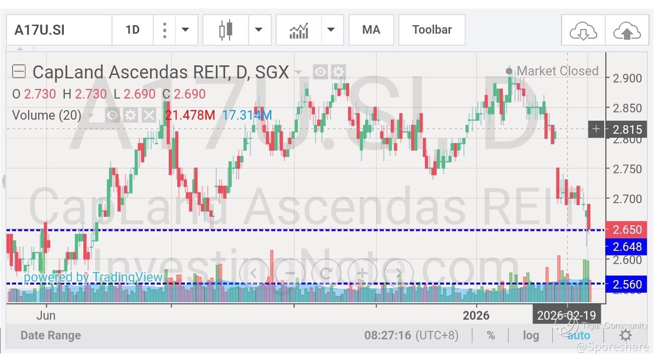 CapLand Ascendas Reit - I think boat is back! Current price at 2.65 is about 5.6 percent for this blue chips index reit counter looks rather interesting!