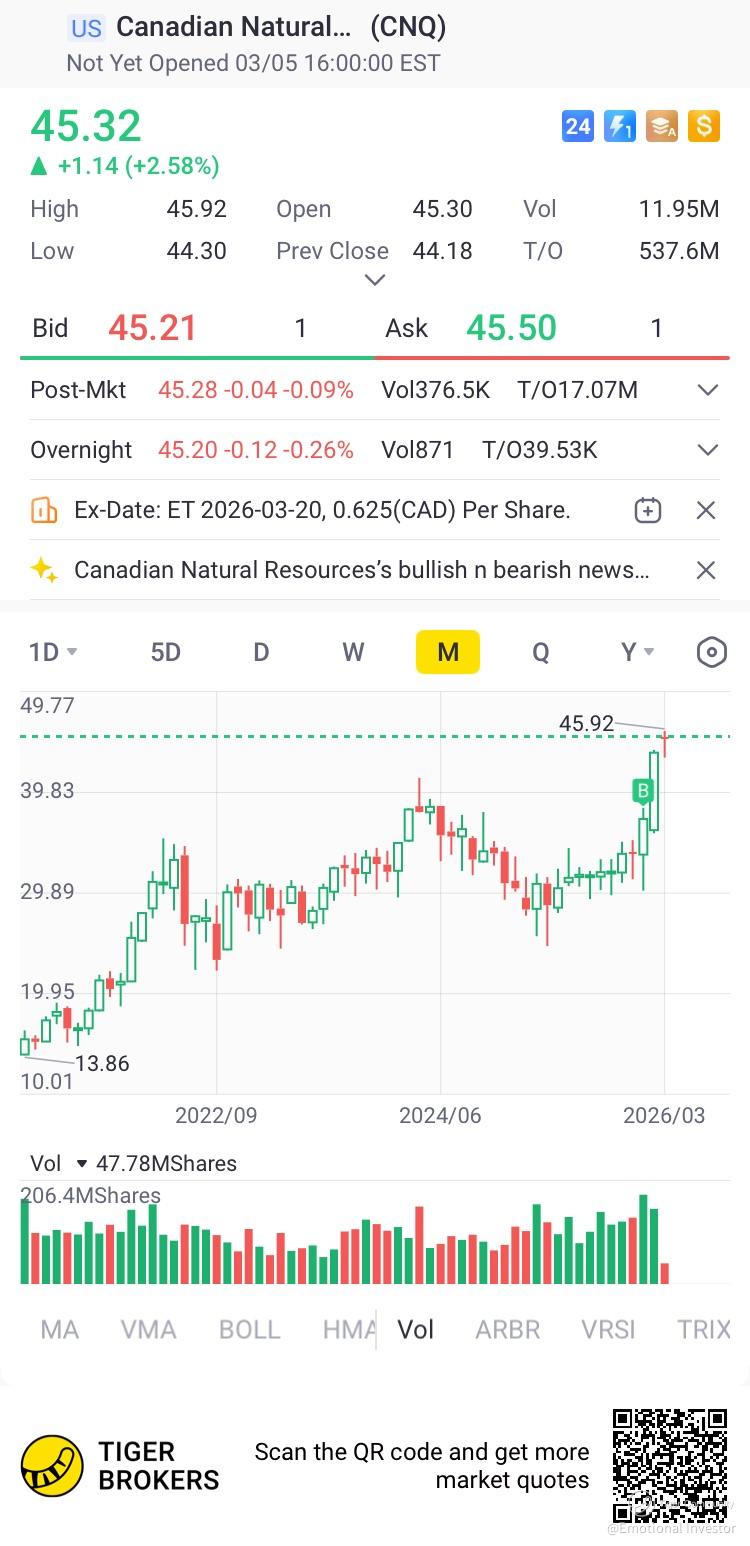 $Canadian Natural Resources(CNQ)$ A new position, record profits, nice increase in dividend plus buybacks looming worth a look