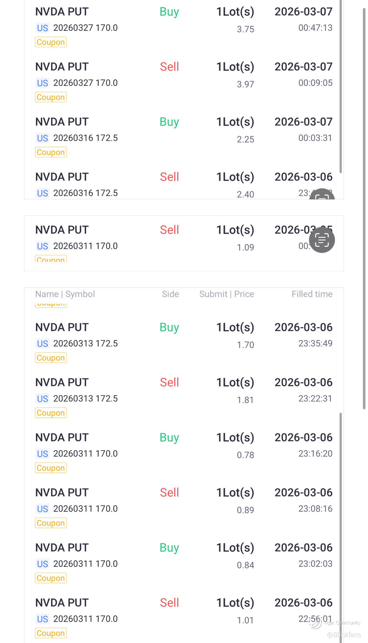 This style of trading is very active and dynamic. Rather than waiting passively for options to expire, I monitor the price movement closely and close positions once a reasonable profit appears. $NVDA 20260327 170.0 PUT$