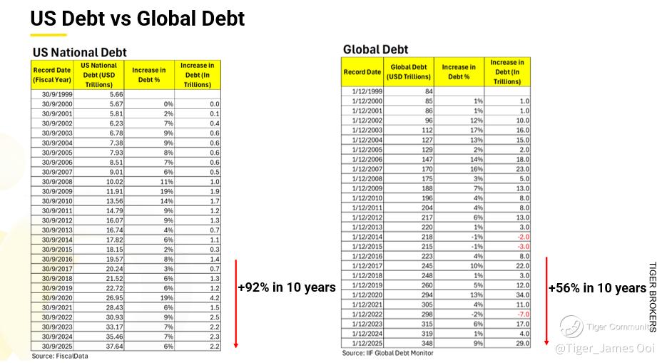 Global debt has now exceeded $348 trillion, raising concerns about fiscal sustainability and long-term currency stability.