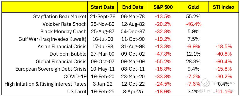 In many of these scenarios, gold has outperformed broad-based equity markets such as the STI and the S&P 500.