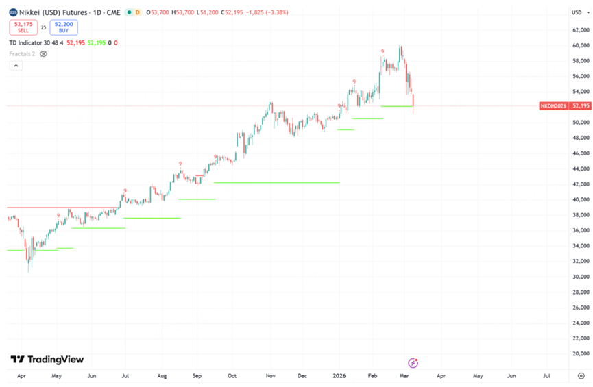 Aside from oil, Japanese equities are also flashing a clear warning, and the Nikkei often acts as an early indicator for U.S. stocks. If the index continues to trade below 51,600, there is a risk it could slide back toward the 42,000 area; in a similar vein, if the Nasdaq decisively breaks below 23,900, a return to the 17,000 zone becomes a real possibility.
