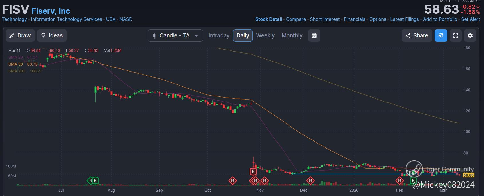 Yet despite its historically stable position in financial technology, the stock has experienced one of the most dramatic collapses among large-cap fintech companies in recent years. Shares once traded above $230 in early 2025, but the stock later plunged more than 70%, briefly trading near the $60 level.