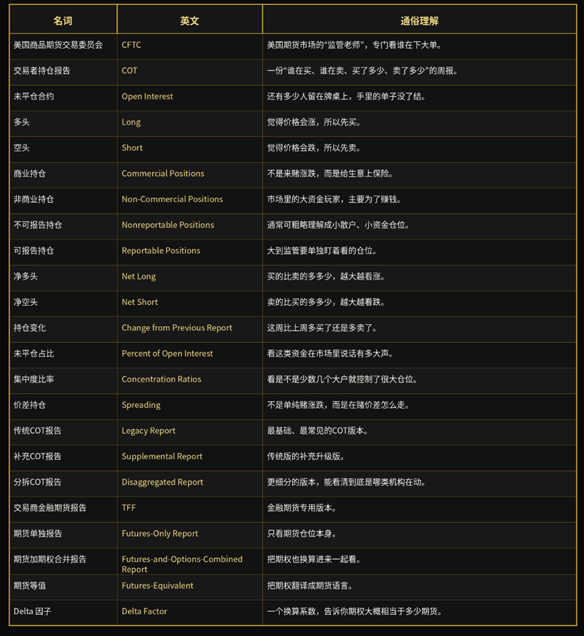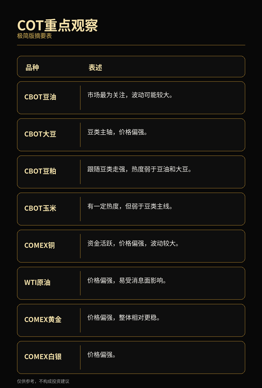 I also put together a summary image for everyone to review. The COT mentioned here refers to the data published by the CFTC.