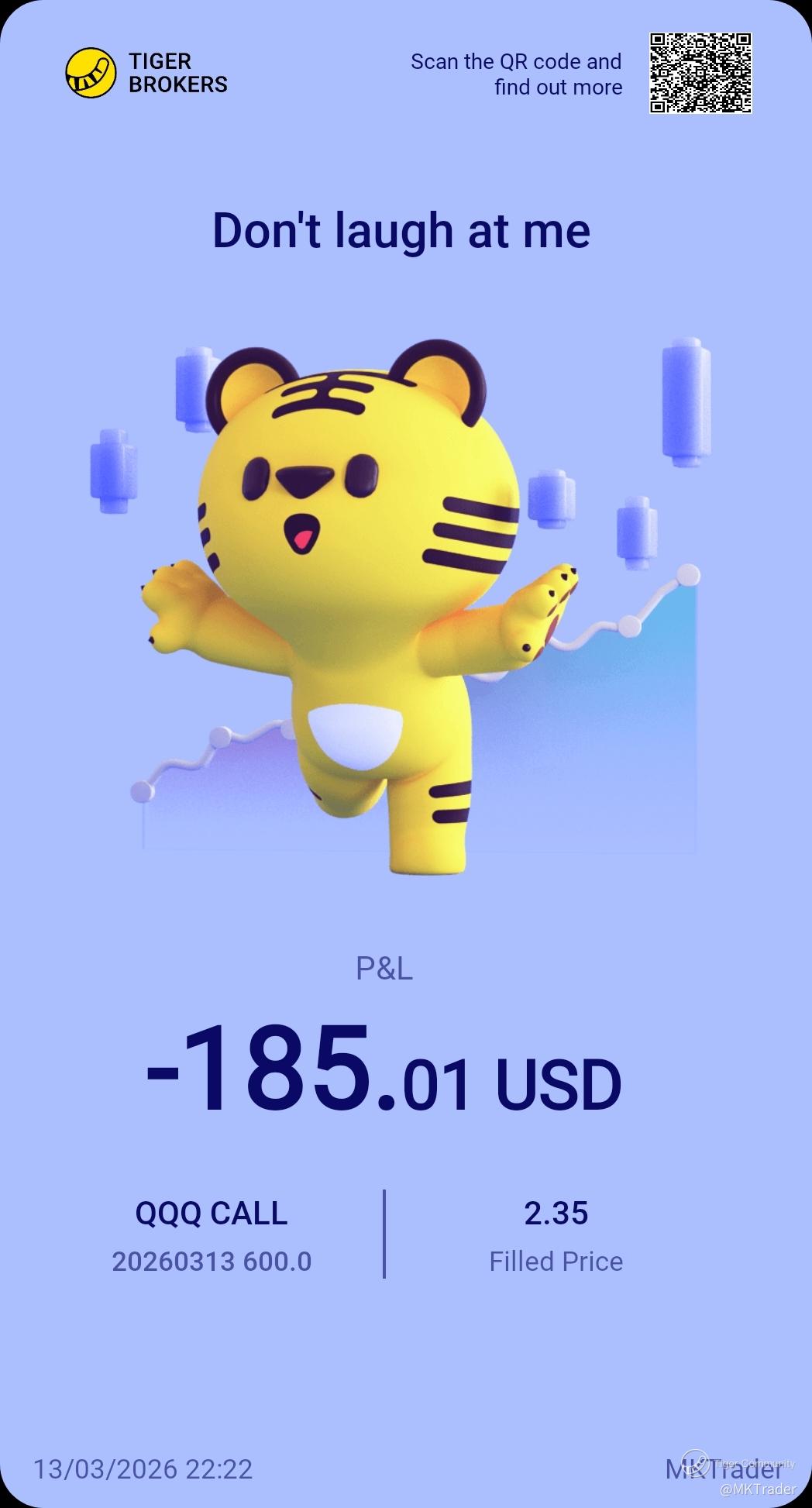 $QQQ 20260313 600.0 CALL$ Itchy finger didn't listen to myself. Need more discipline. Follow own rules. Learn.