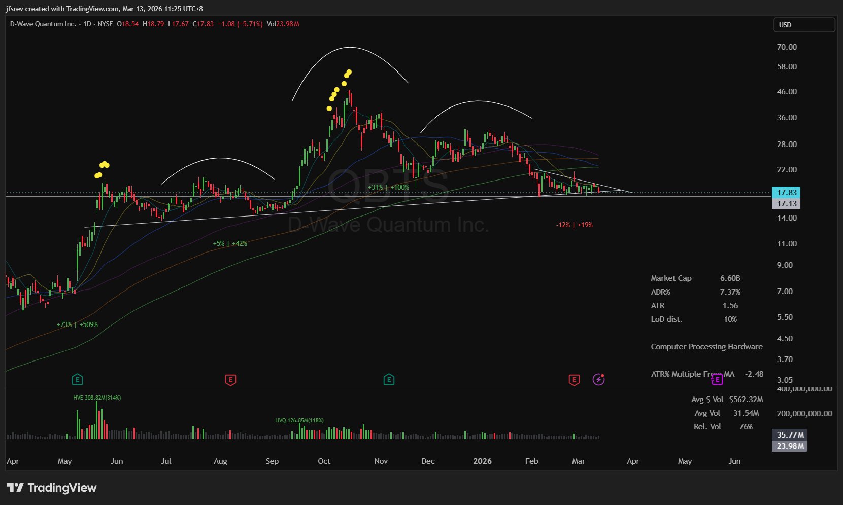 $D-Wave Quantum Inc.(QBTS)$ — Bearish Head & Shoulders Pattern