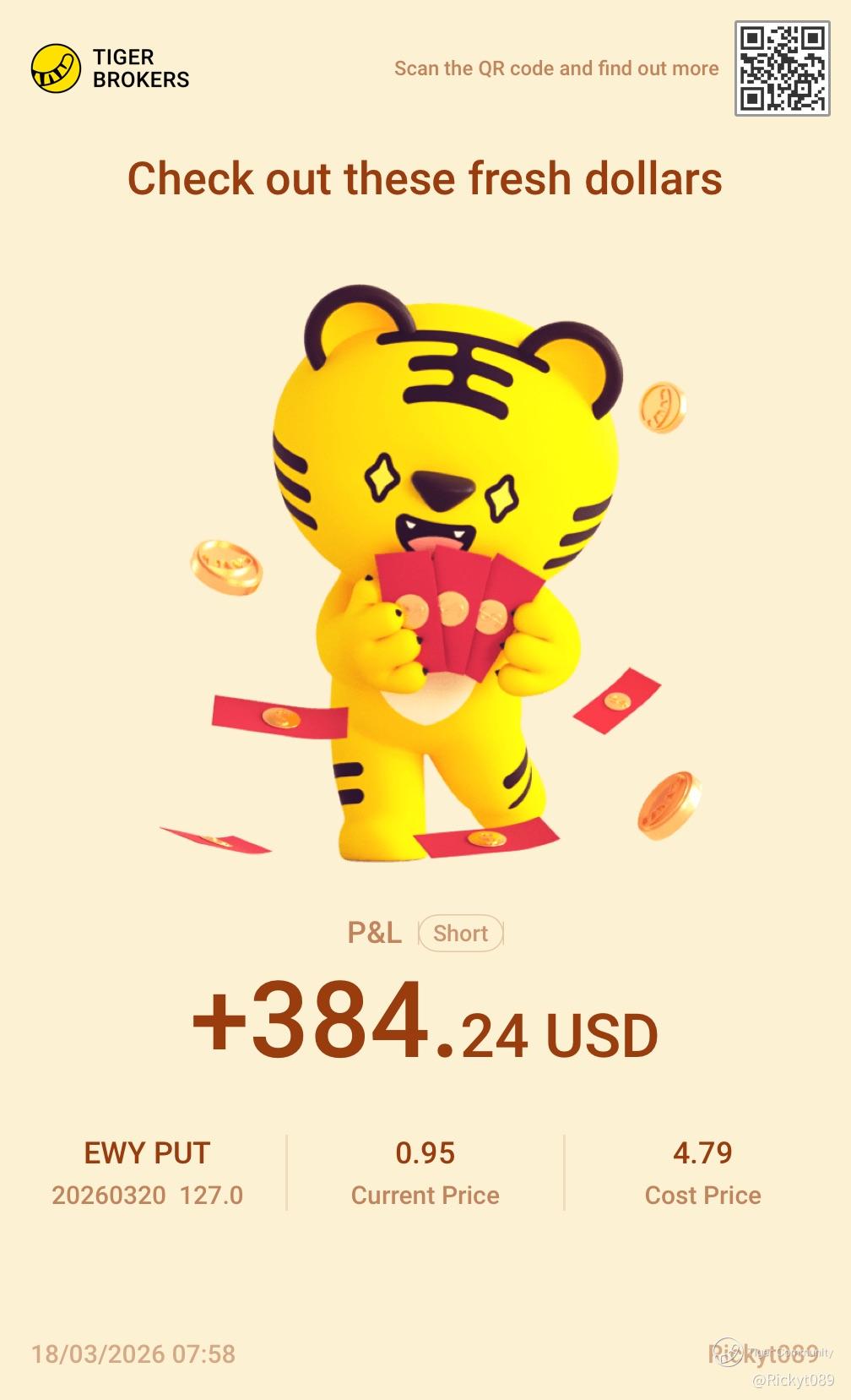 Share your positions with us! This is a column where you can find the winning trades of our fellow tigers. There probably are a few potential opportunities that you may have overlooked.
