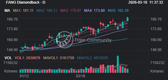 Headquartered in Midland, Texas, Diamondback Energy is an independent oil and gas exploration company focused on the development of unconventional onshore oil and gas reserves in the Permian Basin of West Texas. Its business covers core areas such as the Spraberry, Wolfcamp, and Delaware Basins, and it owns 770 miles of crude oil and natural gas gathering pipelines and an integrated water treatment system. The stock currently has a dividend yield of 2.29%, and its share price is expected to rise further. Goldman Sachs has set a target price of $212, representing a 20% upside from current trading levels.