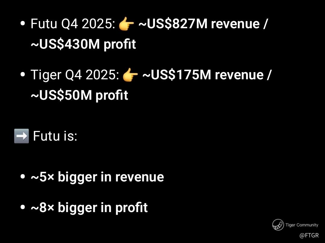 Just use chatgpt to compare. Futu is 5x or 8x in terms of revenue and profit. Even if it is 10x, tiger shall be at least $13-14.