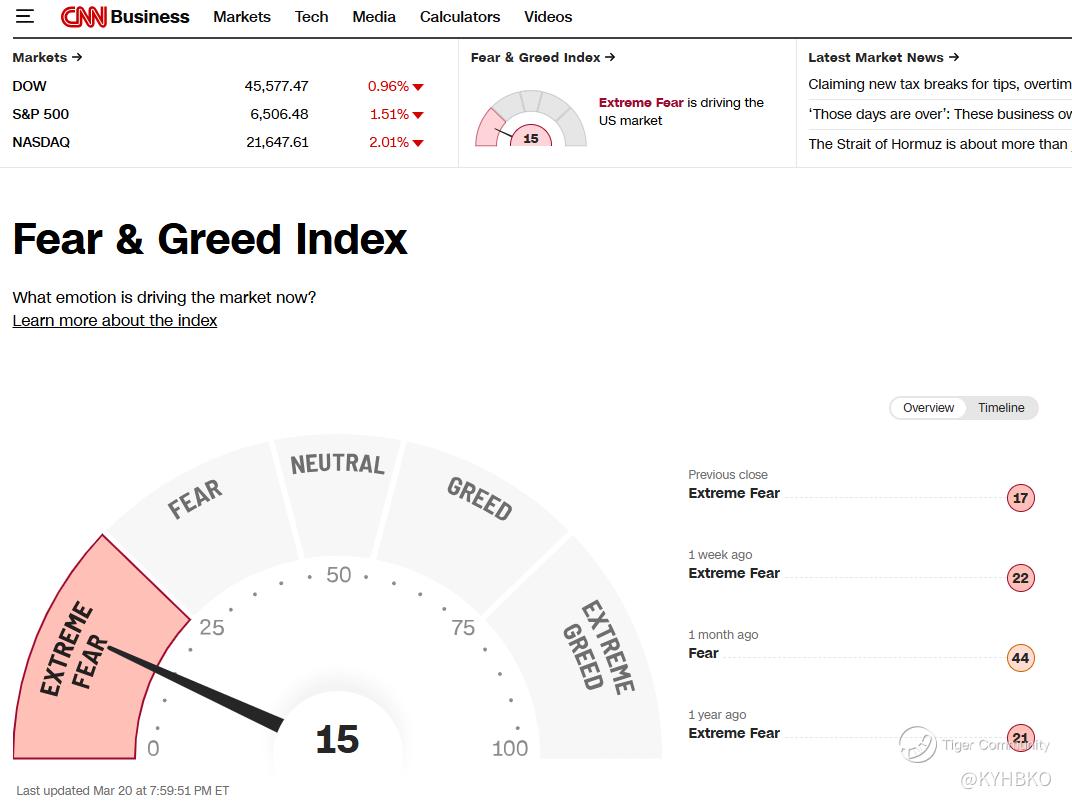 The CNN Fear & Greed Index has recently entered the extreme fear zone, registering a score of 15. This development accurately mirrors the prevailing market sentiment, highlighting heightened investor anxiety and apprehension.