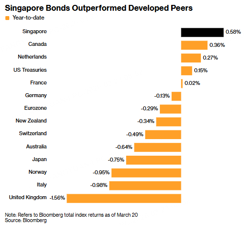 Singapore’s bonds have beaten all their developed-market peers this year as the war in Iran has bolstered haven demand, and fund managers say they are still one of the safest places to be.