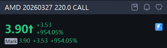 There are 783.81K AMD option contracts traded on Wednesday, up 122% from the previous trading day. Call options account for 52% of overall option trades. Particularly high volume was seen for the $220 strike call option expiring March 27, with 48,052 contracts trading. AMD 20260327 220.0 CALL
