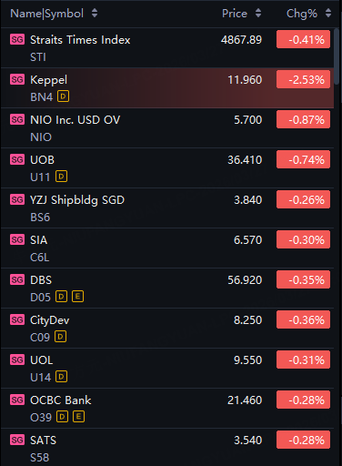 Singapore stocks opened lower on Friday. STI down 0.4%; Keppel down 3%.