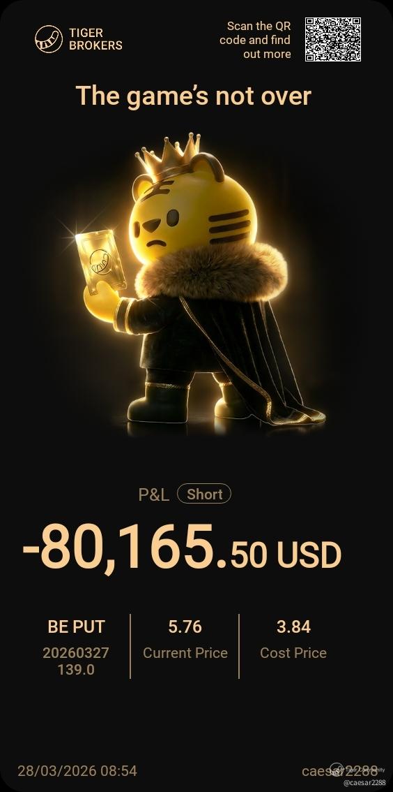 $BE 20260327 139.0 PUT$ ha ha ha ha ... i guess its not always a green day ... ok good time to buy cheap :) target 2 weeks to recover the lost
