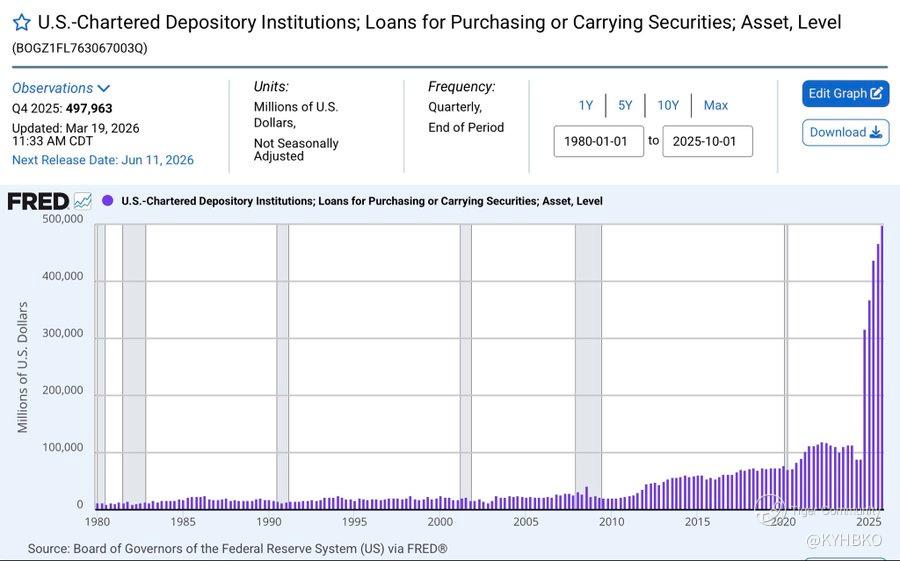 Domestic Banks making loans to dealers and hedge funds to finance the purchase of Securities hit almost $500B in the 4Q of 2025 - X user Monetary McFly