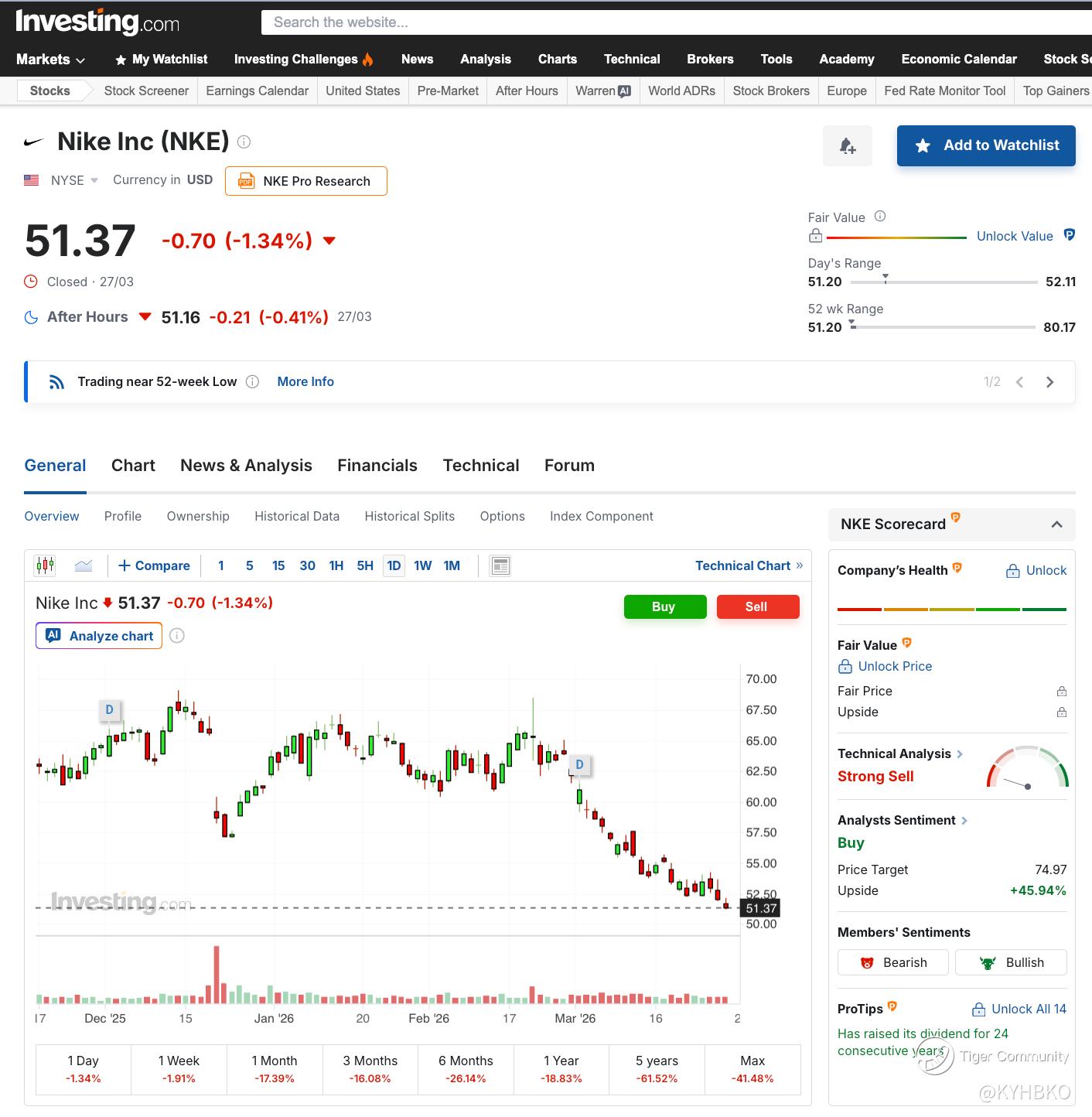 Despite recent declines in financial performance, there is a notable divergence between technical analysis and analyst sentiment regarding Nike’s stock. Technical indicators currently suggest a strong sell rating, signalling that the stock may face continued downward momentum in the near term. In contrast, analyst sentiment remains optimistic, with many experts maintaining a buy recommendation. Furthermore, the consensus price target for Nike shares is set at $74.97, indicating a potential upside of 45.94% from the current trading price. This disparity highlights differing perspectives on the stock’s future trajectory, as market indicators and professional forecasts provide conflicting guidance for investors.