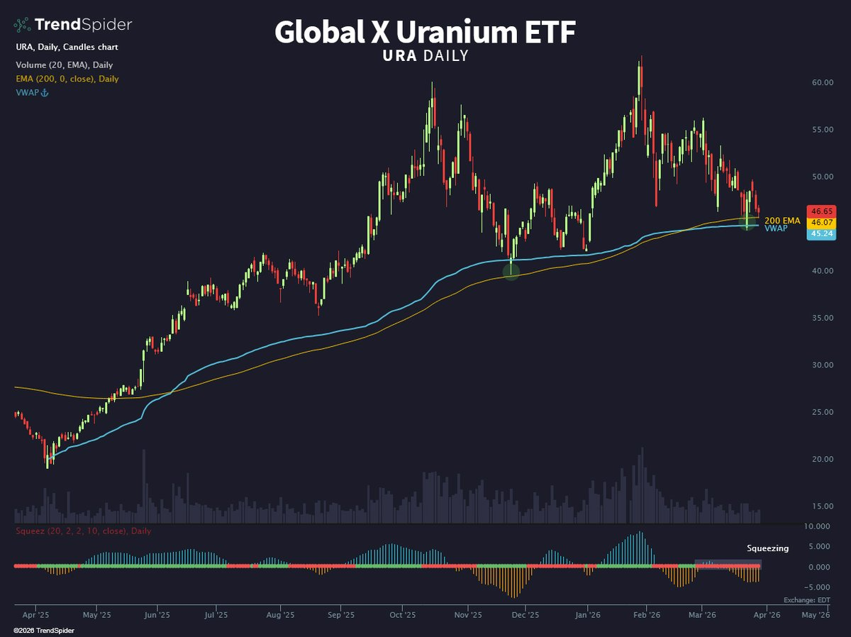 The U.S. is reportedly considering removing 1,000 lbs of uranium from Iran while $Global X Uranium ETF(URA)$ squeezes at key levels ๐