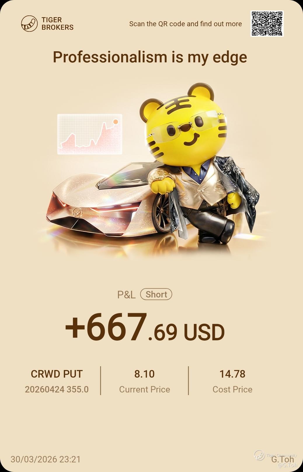Share your positions with us! This is a column where you can find the winning trades of our fellow tigers. There probably are a few potential opportunities that you may have overlooked.