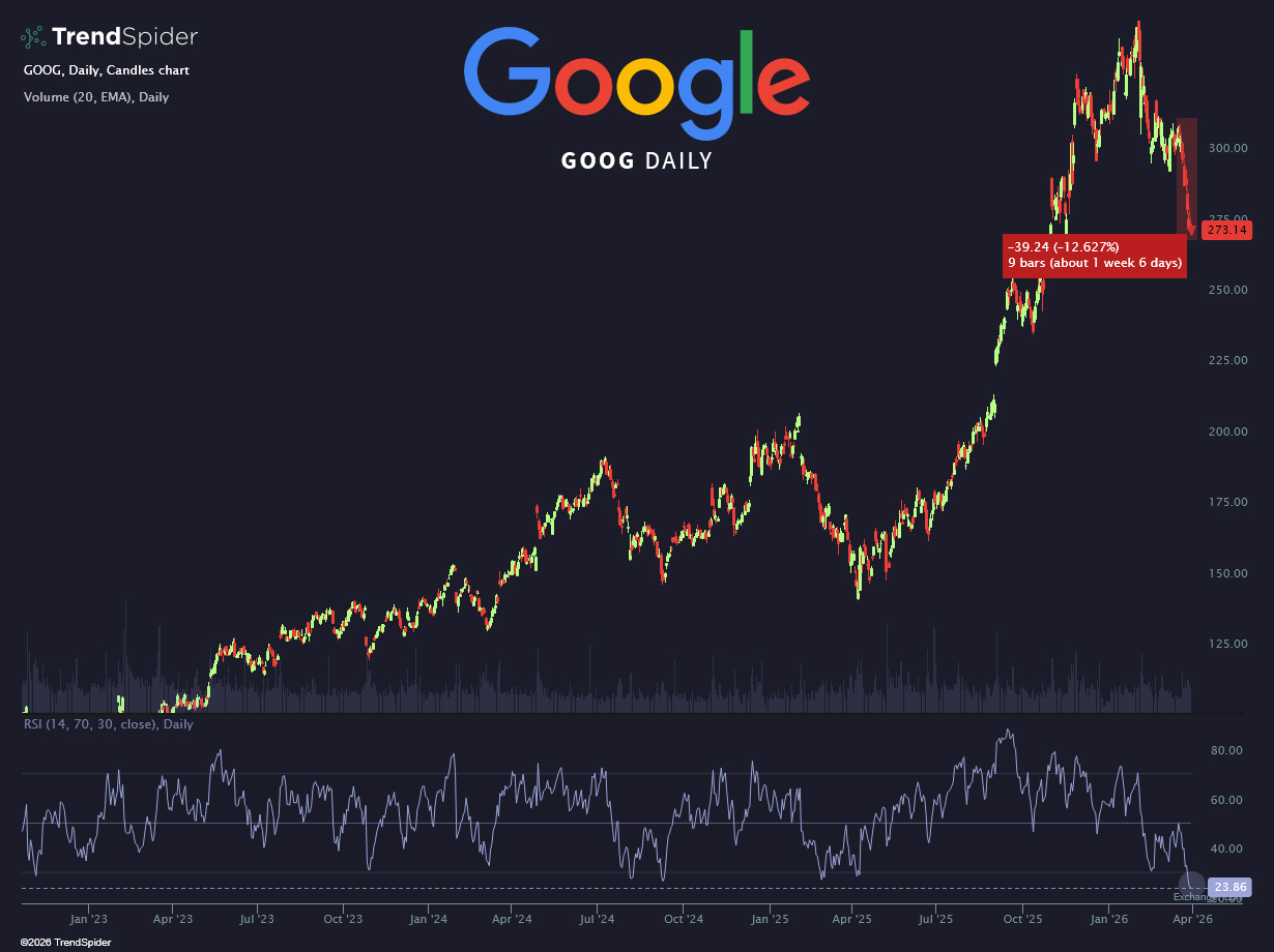 The last time $Alphabet(GOOG)$ printed a daily RSI reading this low was during the Financial Crisis of 2008.