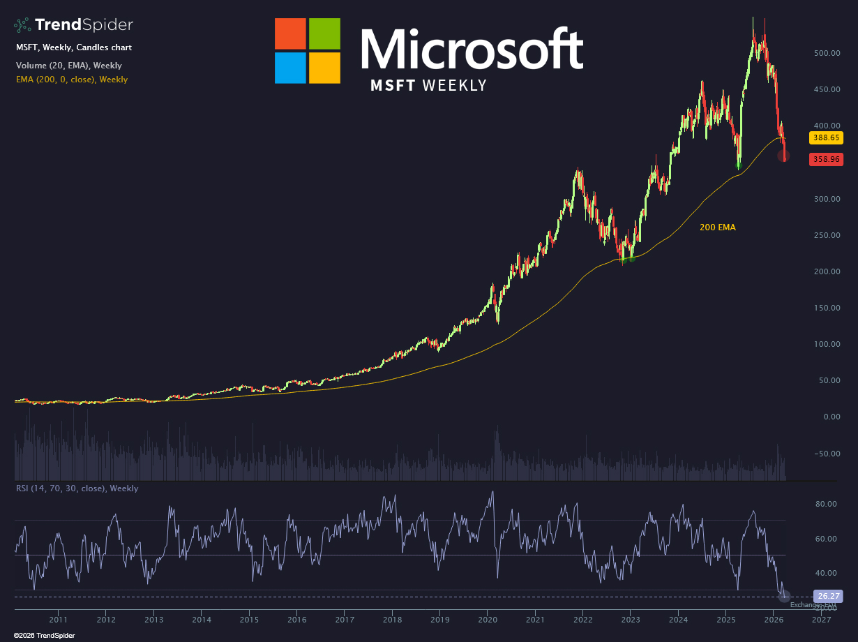 $Microsoft(MSFT)$ weekly RSI hasn't seen this low in over 15 years.